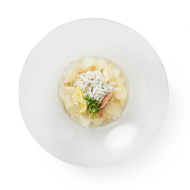 山利のしらすをたっぷり乗せ、特製のレモンシャーベット出汁氷をあしらい爽やかで冷たいさっぱりした一品です!
